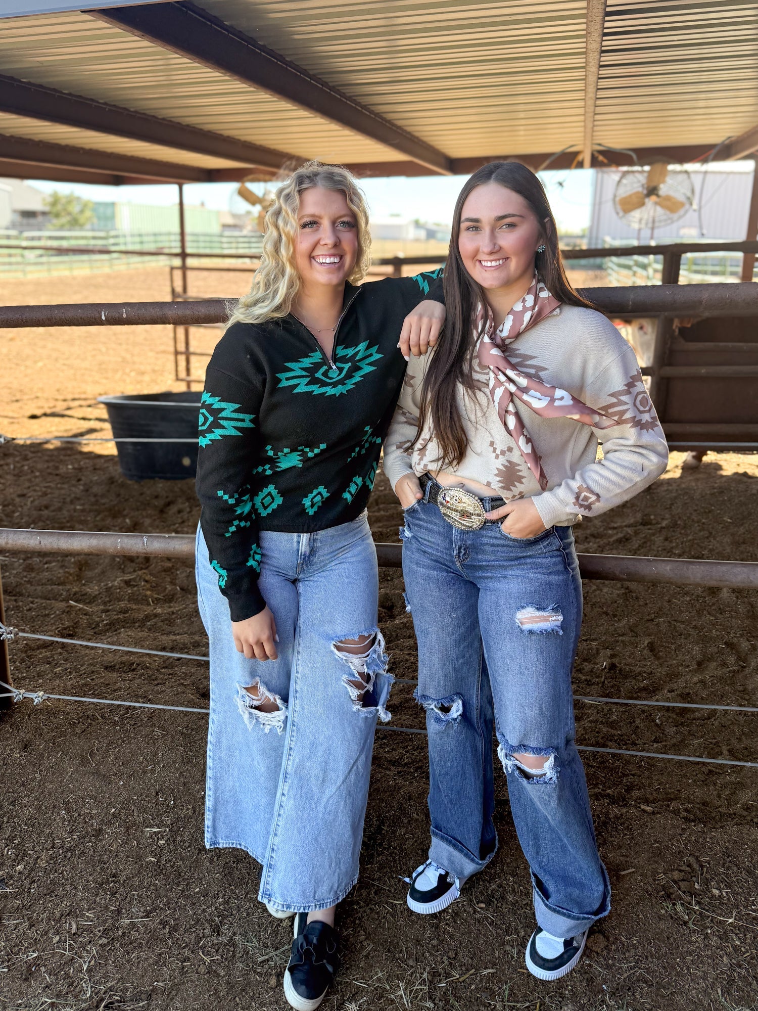 Turn up the turquoise! The BLACK Calhoun Pullover pops with bright teal southwestern designs that bring instant attitude. Warm, comfy, and perfect for pairing with denim — it’s an easy go-to for chilly days and rowdy nights.