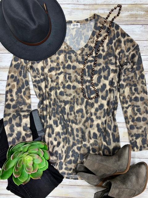 This super soft, vneck, leopard top is perfect for those cooler days! It is warm, cozy, and simply amazing!